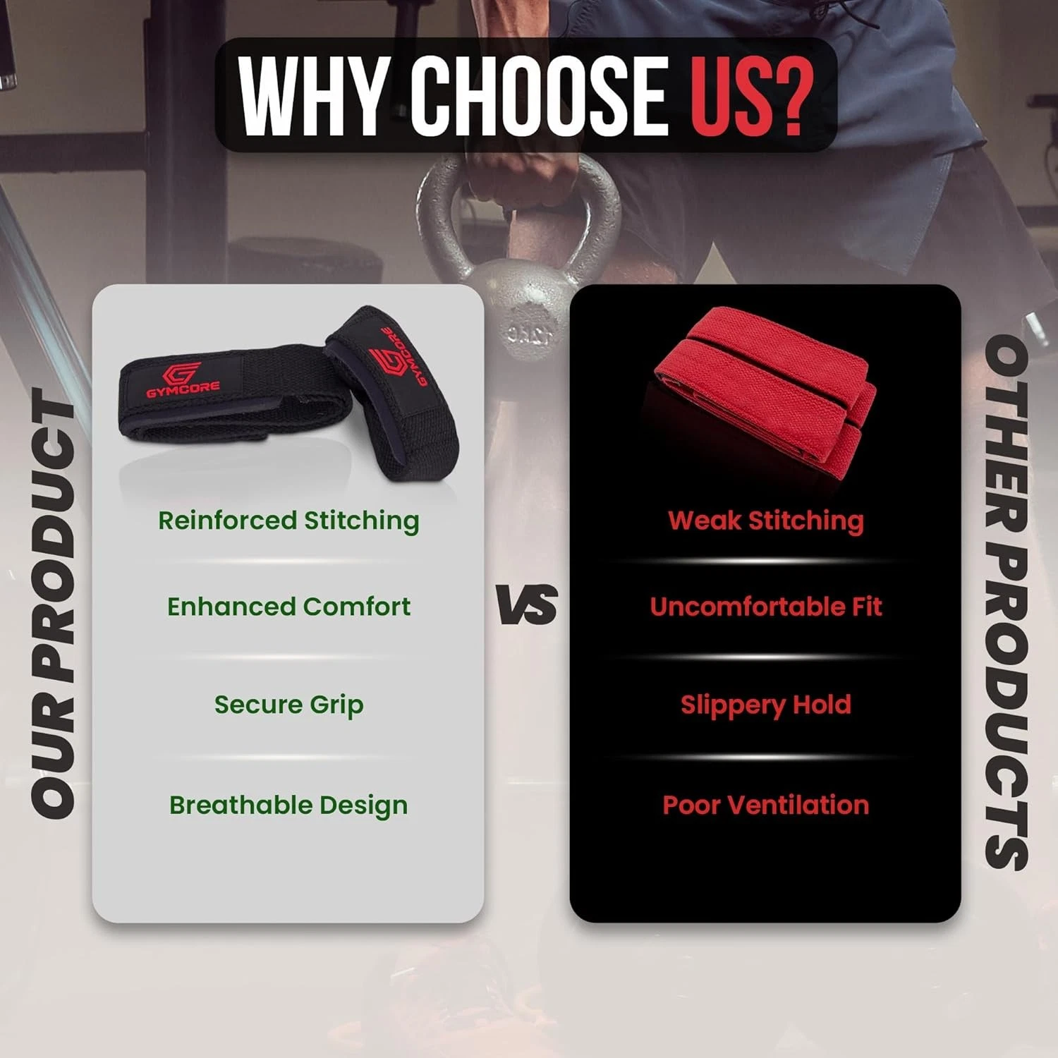 GYM Core home gym equipment wrist straps for weightlifting feature extra-stitched seams.