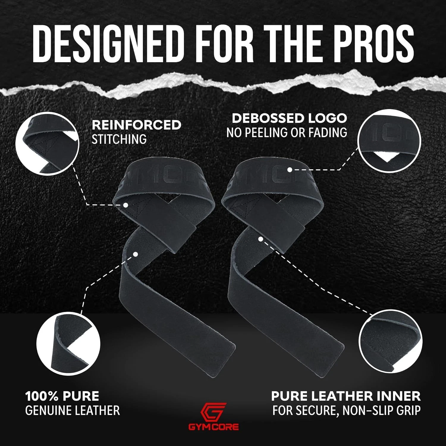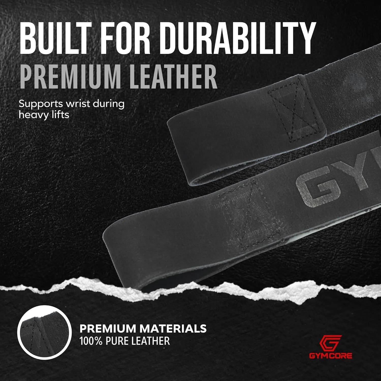 GYMCORE Dual Ply Lifting Black Leather Wrist Straps