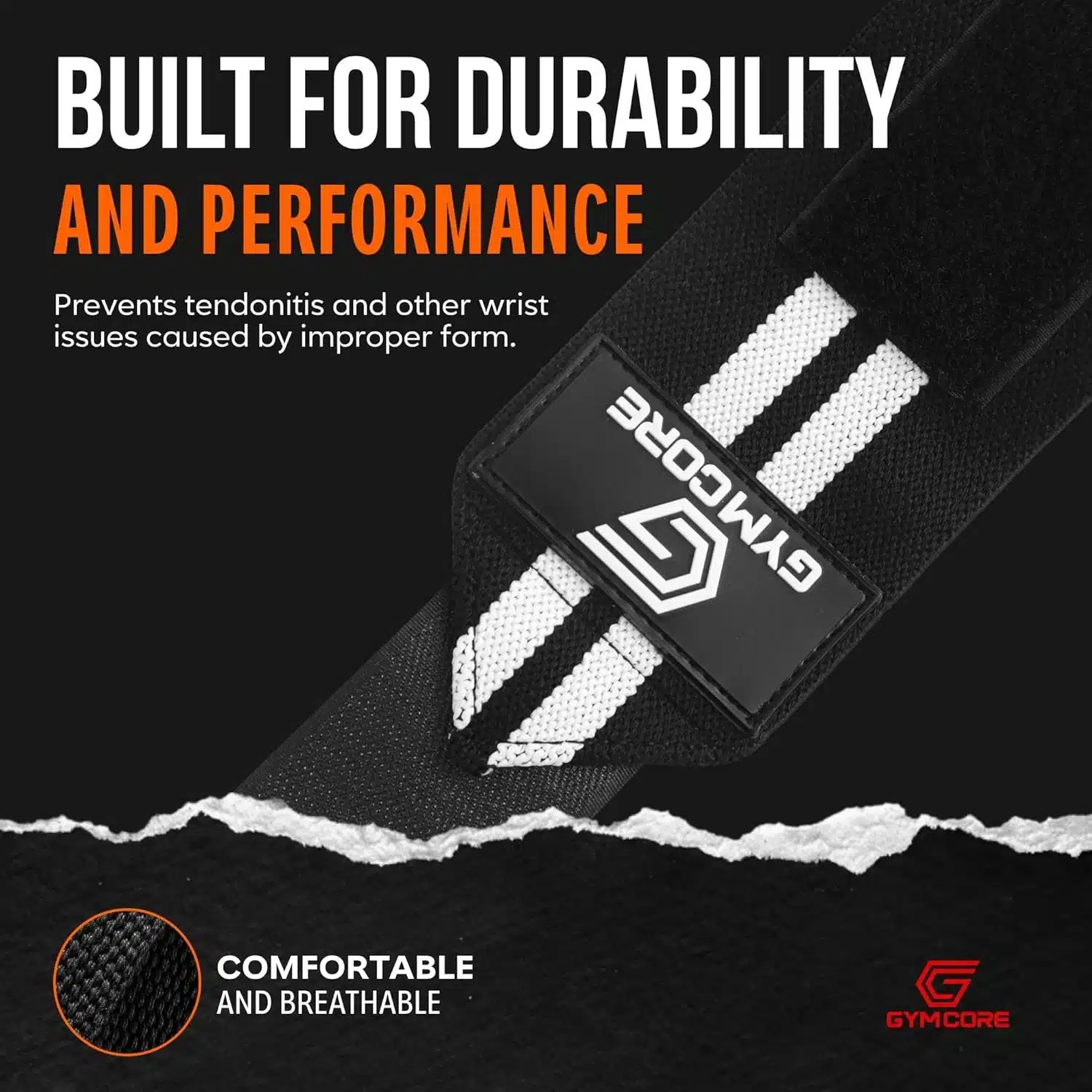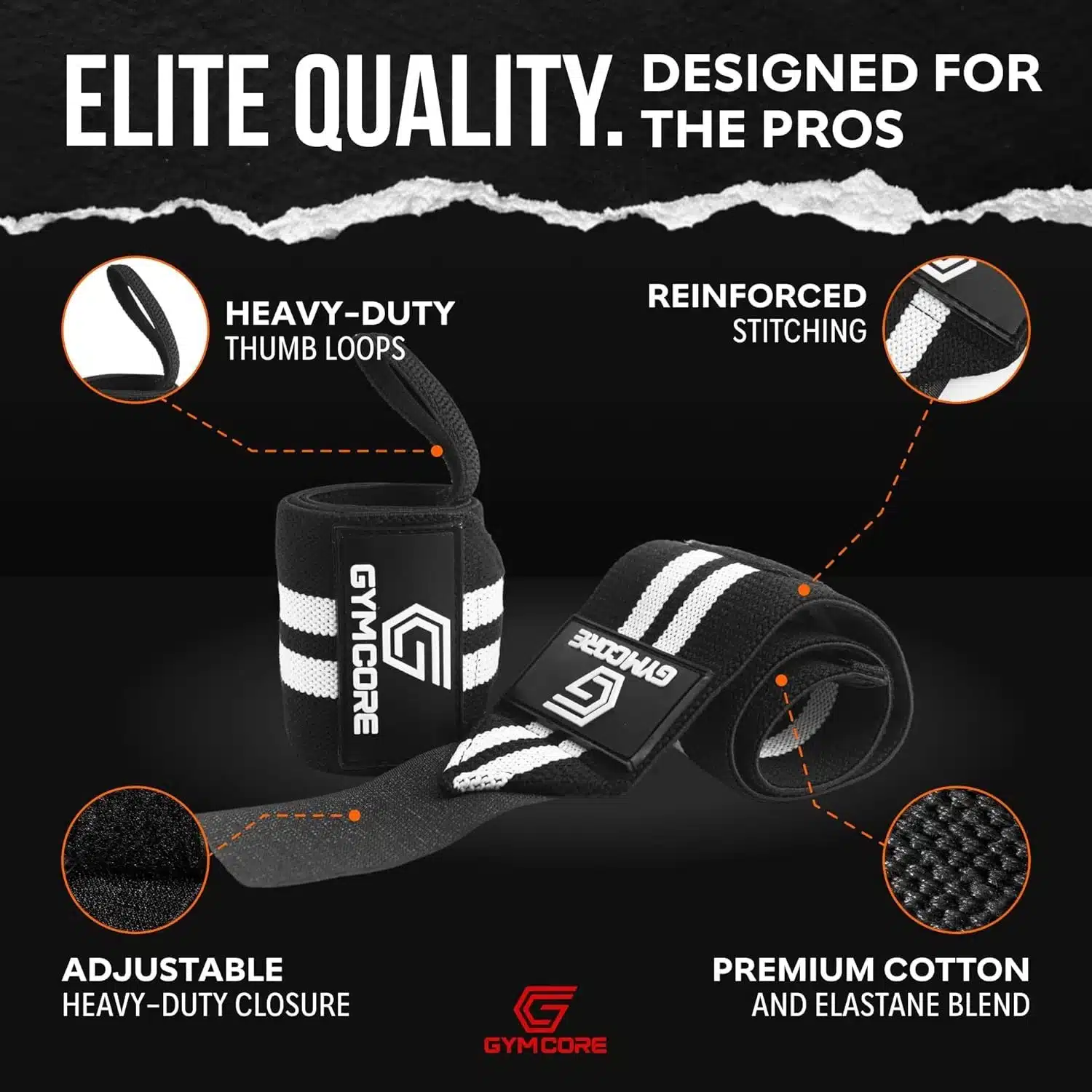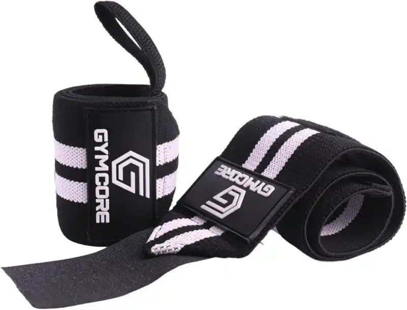 GYMCORE Weight Lifting Heavy-Duty Adjustable Red and White Wrist Wraps